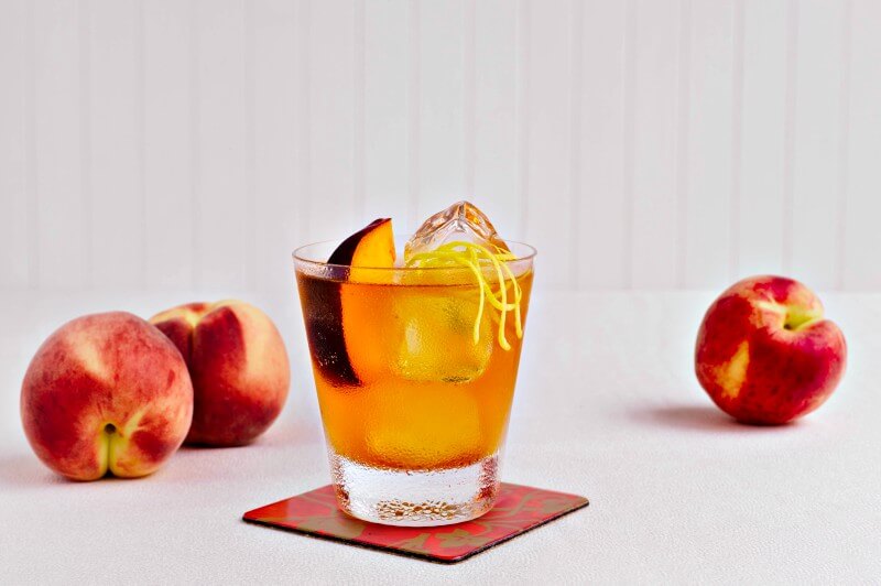 Slice blood orange and remove slice for garnish. Juice remaining blood orange. Combing Sparkling Ice Peach Nectarine, Grand Marnier and blood orange juice. Garnish with blood orange slice.