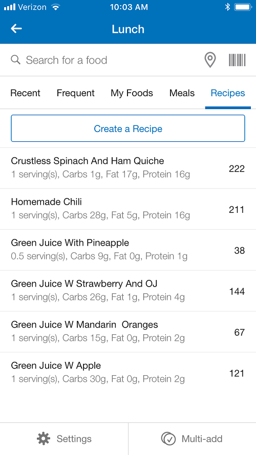 I use the MyFitnessPal app and it has an area to include your foods and even calculate your favorite recipes.Super simple.