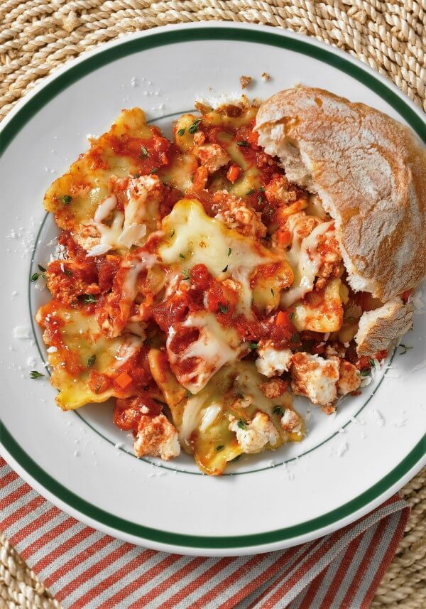 When there’s no time to layer lasagna, a bag of ravioli will come close to the real thing. Spend 5 minutes early in the afternoon and you’ll be rewarded with a hearty feast at dinnertime.