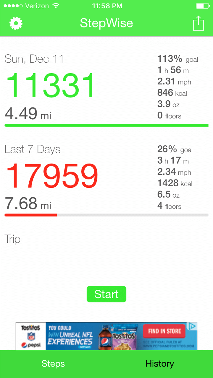 So I’ve been using my phone as my step counter and I downloaded this great app called StepWise that is pretty simple. It literally counts your steps throughout the day. What I like is that it tracks your history so you can set your own goals and see how you have been doing.