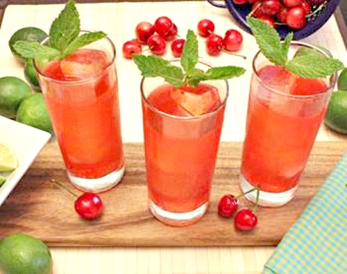 · Mint, fresh cherries and lime slices for garnish