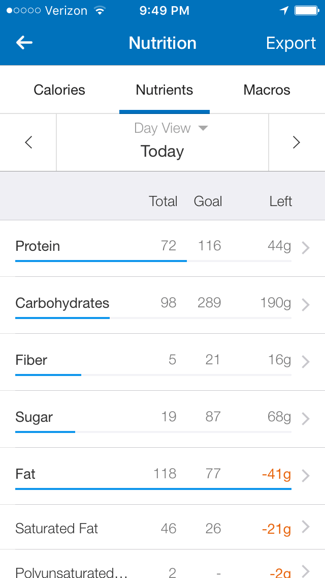 It’s an awesome tool that I use every day and it gives me lots of information to help me succeed in my weight-loss and fitness process. It’s definitely helps me stay on track. I definitely have to watch my fats!